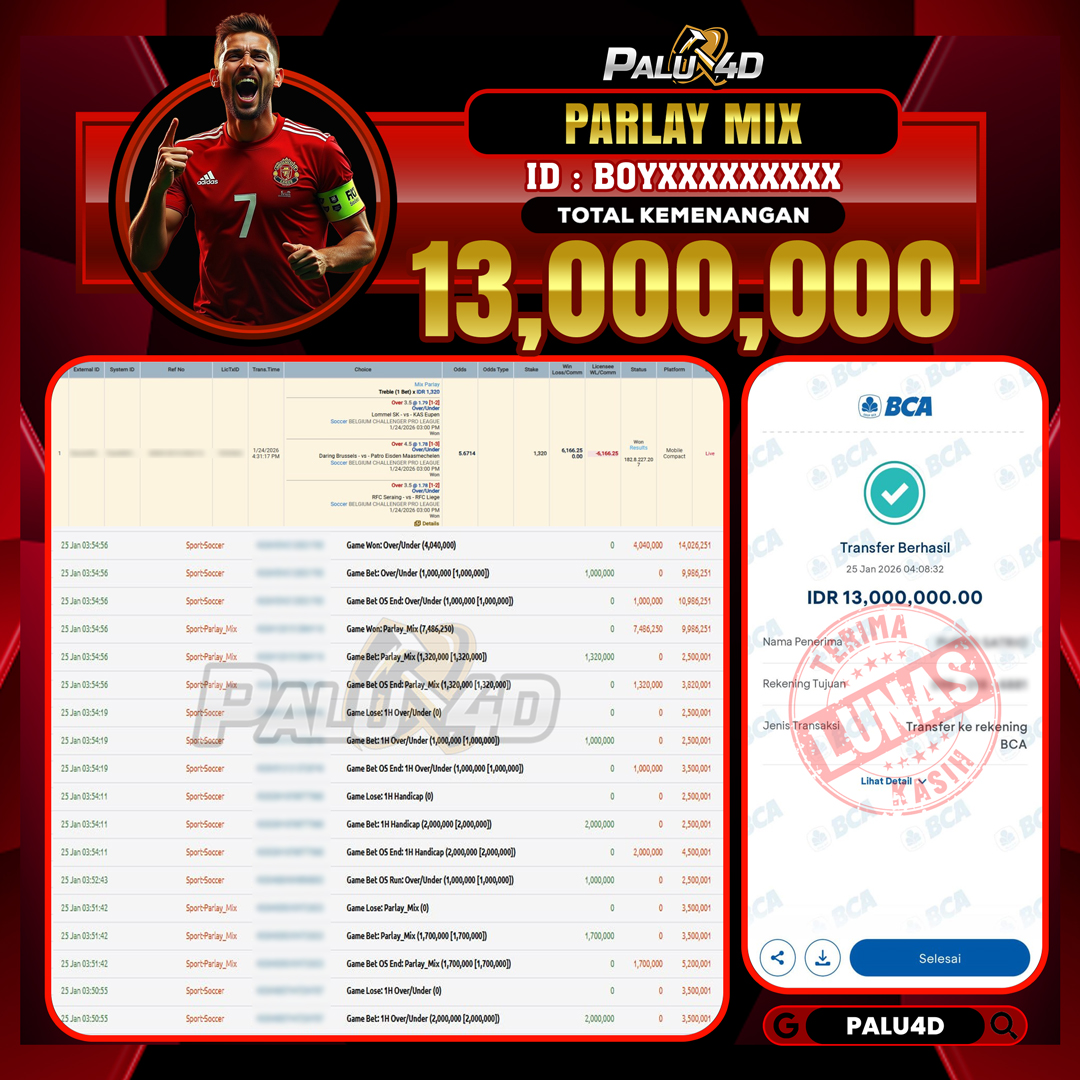 PALU4D – Menang SPORTBOOKS TARUHAN BOLA Rp.13.000.000.,- LUNAS PALU4D – Selamat bagi pemenang yang mendapatkan jackpot hari ini 25 JANUARI 2026 di game […]