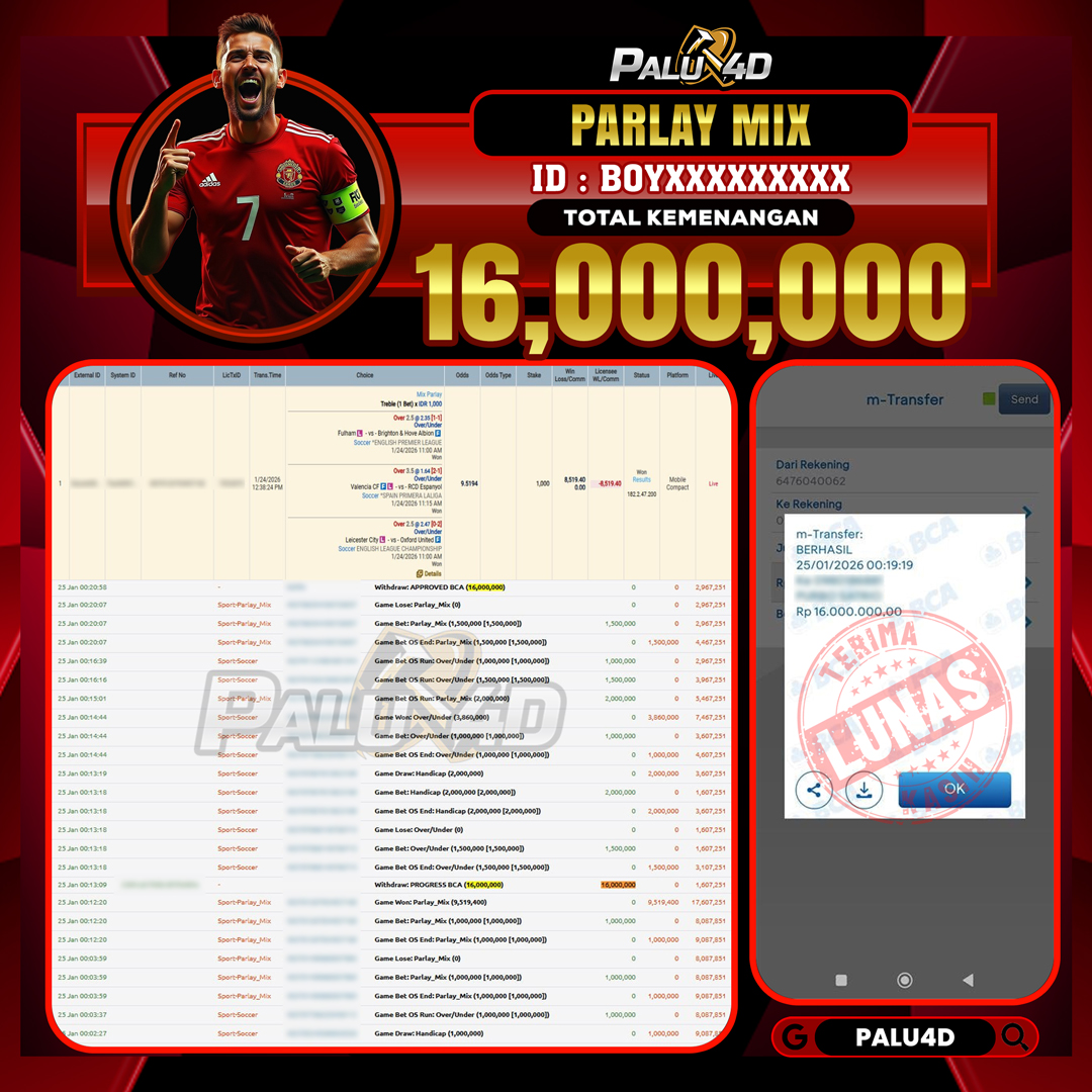 PALU4D – Menang SPORTBOOKS TARUHAN BOLA Rp.16.000.000.,- LUNAS PALU4D – Selamat bagi pemenang yang mendapatkan jackpot hari ini 25 JANUARI 2026 di game […]