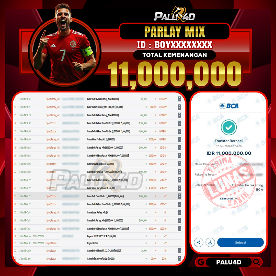 PALU4D – Menang SPORTBOOKS TARUHAN BOLA Rp.11.000.000.,- LUNAS PALU4D – Selamat bagi pemenang yang mendapatkan jackpot hari ini 25 JANUARI 2026 di game […]