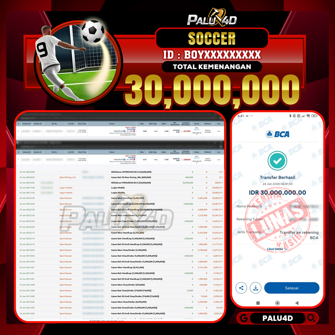 PALU4D – Menang SPORTBOOKS TARUHAN BOLA Rp.30.000.000.,- LUNAS PALU4D – Selamat bagi pemenang yang mendapatkan jackpot hari ini 24 JANUARI 2026 di game […]