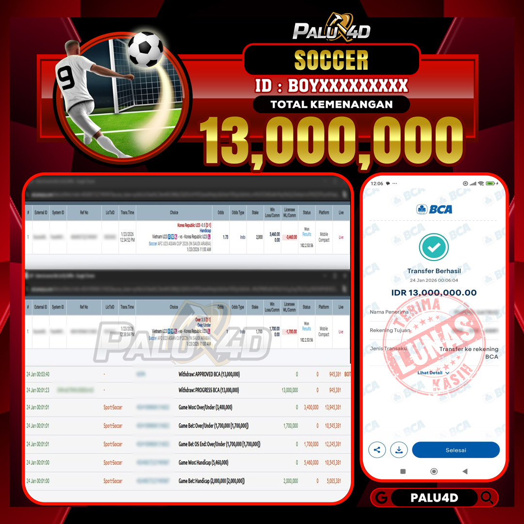 PALU4D – Menang SPORTBOOKS TARUHAN BOLA Rp.22.500.000.,- LUNAS PALU4D – Selamat bagi pemenang yang mendapatkan jackpot hari ini 24 JANUARI 2026 di game […]