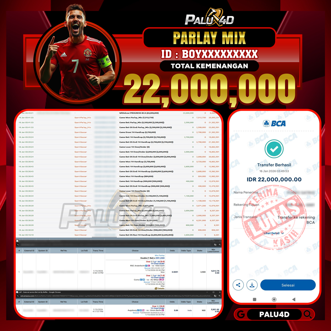 PALU4D – Menang SPORTBOOKS TARUHAN BOLA Rp.22.000.000.,- LUNAS PALU4D – Selamat bagi pemenang yang mendapatkan jackpot hari ini 16JANUARI 2026 di game Sportbook […]