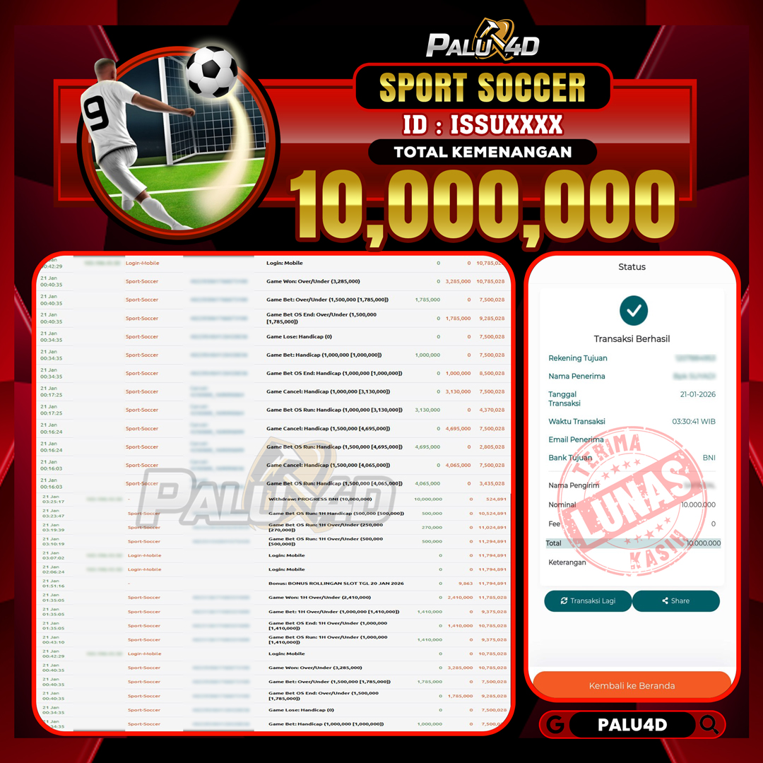 PALU4D – Menang SPORTBOOKS TARUHAN BOLA Rp.10.000.000.,- LUNAS PALU4D – Selamat bagi pemenang yang mendapatkan jackpot hari ini 21JANUARI 2026 di game Sportbook […]