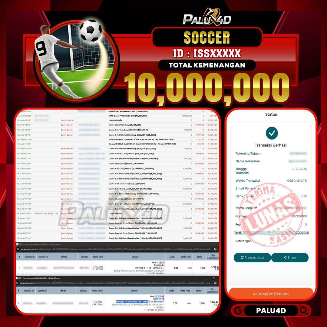 PALU4D – Menang SPORTBOOKS TARUHAN BOLA Rp.10.000.000.,- LUNAS PALU4D – Selamat bagi pemenang yang mendapatkan jackpot hari ini 19JANUARI 2026 di game Sportbook […]